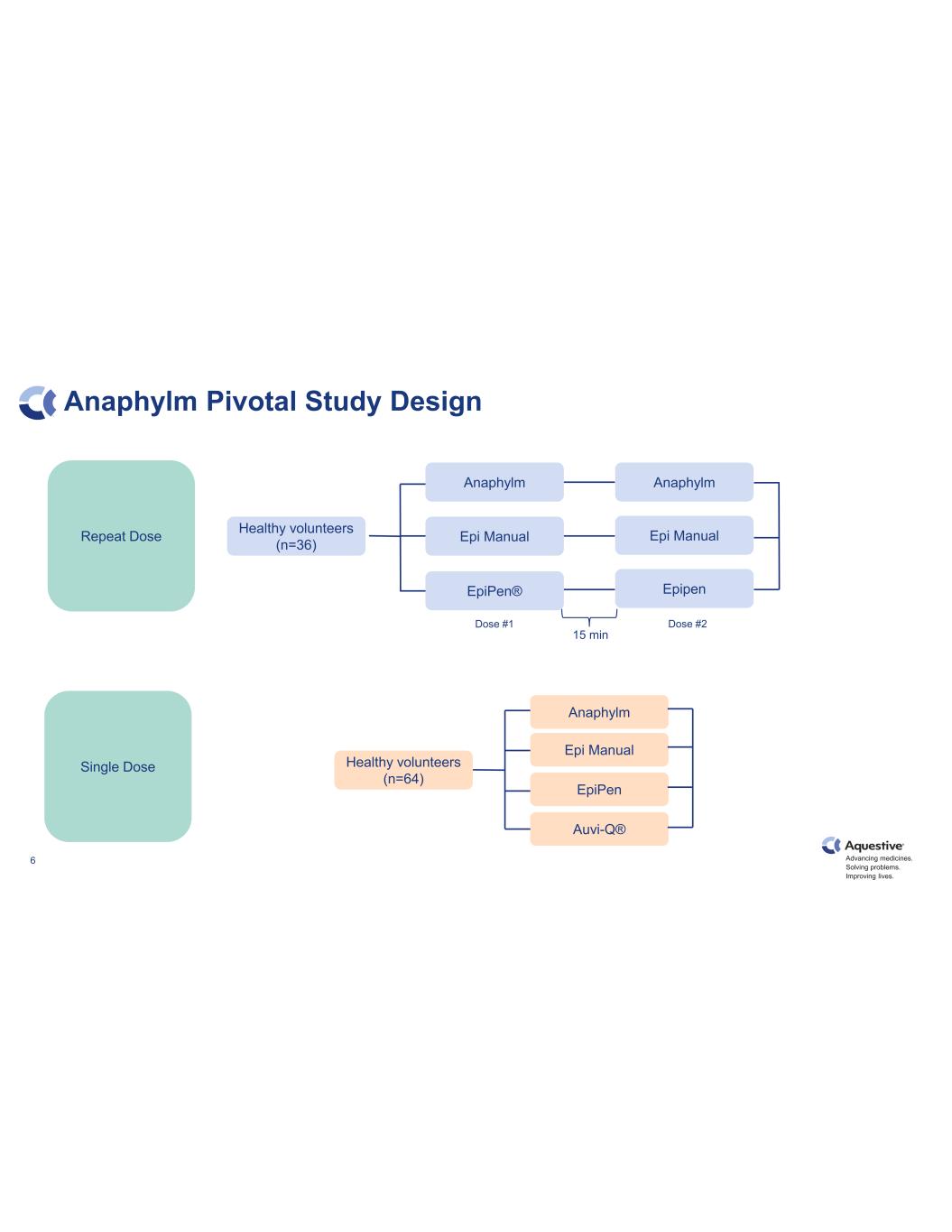 Advancing medicines. Solving problems. Improving lives. Anaphylm Pivotal Study Design 6 Healthy volunteers (n=36) Anaphylm Epi Manual EpiPen® Anaphylm Epi Manual Epipen 15 min Dose #1 Repeat Dose Dose #2 Single Dose Healthy volunteers (n=64) Anaphylm Epi Manual Auvi-Q® EpiPen