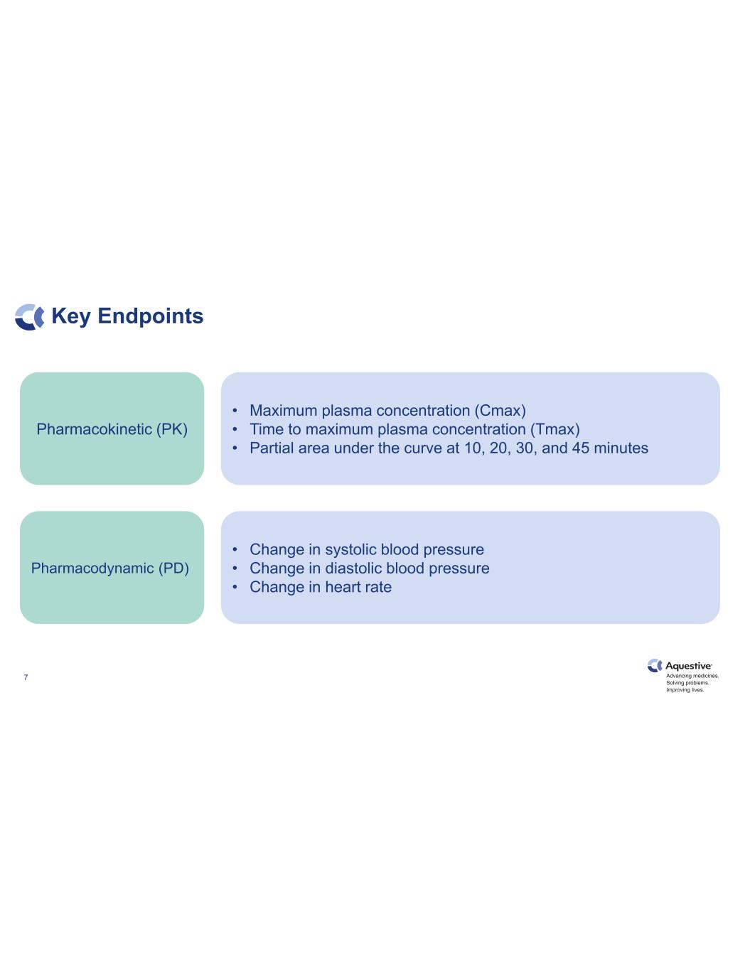 Advancing medicines. Solving problems. Improving lives. Key Endpoints 7 Pharmacokinetic (PK) Pharmacodynamic (PD) • Maximum plasma concentration (Cmax) • Time to maximum plasma concentration (Tmax) • Partial area under the curve at 10, 20, 30, and 45 minutes • Change in systolic blood pressure • Change in diastolic blood pressure • Change in heart rate