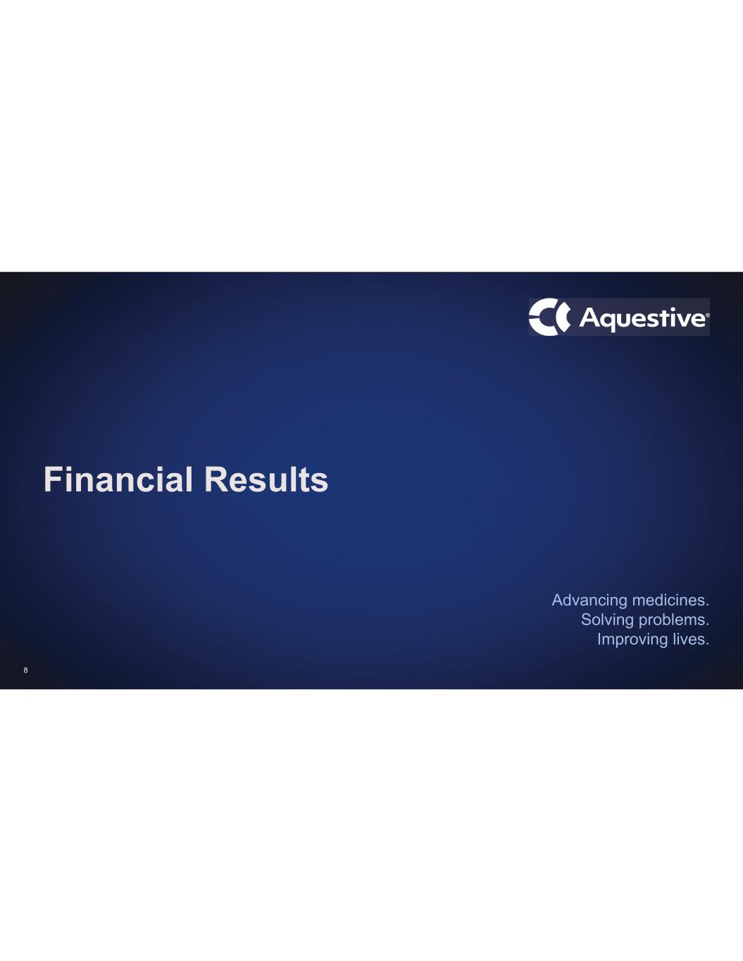 Advancing medicines. Solving problems. Improving lives. Financial Results 8