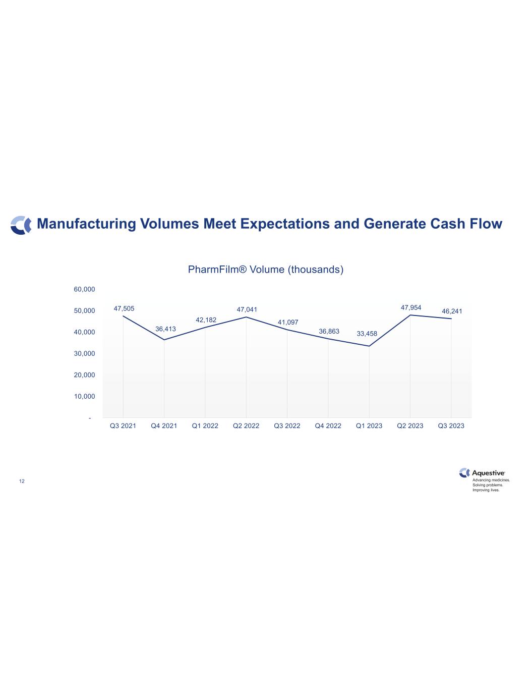 Advancing medicines. Solving problems. Improving lives. 12 Manufacturing Volumes Meet Expectations and Generate Cash Flow 47,505 36,413 42,182 47,041 41,097 36,863 33,458 47,954 46,241 - 10,000 20,000 30,000 40,000 50,000 60,000 Q3 2021 Q4 2021 Q1 2022 Q2 2022 Q3 2022 Q4 2022 Q1 2023 Q2 2023 Q3 2023 PharmFilm® Volume (thousands)
