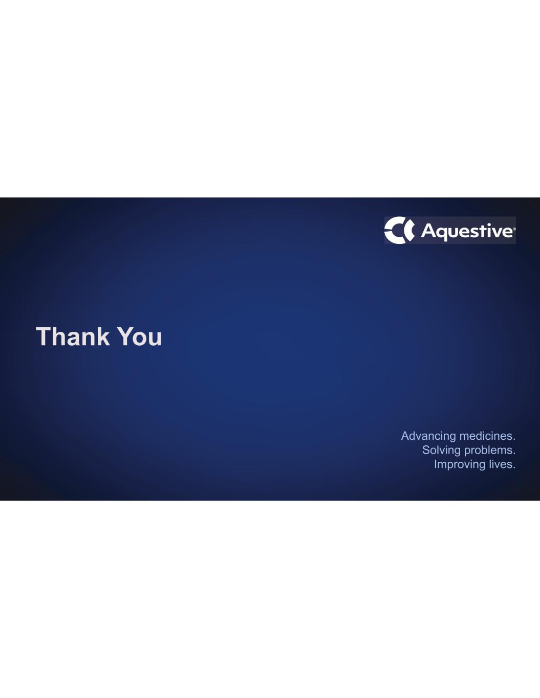Aquestive is pharmaceutical company advancing medicines to bring meaningful improvement to patients' lives through innovative science and delivery technologies. We are developing orally administered products to deliver complex molecules, providing novel alternatives to invasive and inconvenient standard of care therapies. Aquestive has five commercialized products marketed by its licensees in the U.S. and around the world, and is the exclusive manufacturer of these licensed products. The Company also collaborates with pharmaceutical companies to bring new molecules to market using proprietary, best-in-class technologies, like PharmFilm®, and has proven drug development and commercialization capabilities. Aquestive is advancing a late-stage proprietary product pipeline focused on treating diseases of the central nervous system and an earlier stage pipeline for the treatment of severe allergic reactions, including anaphylaxis. For more information, visit Aquestive.com and follow us on LinkedIn.