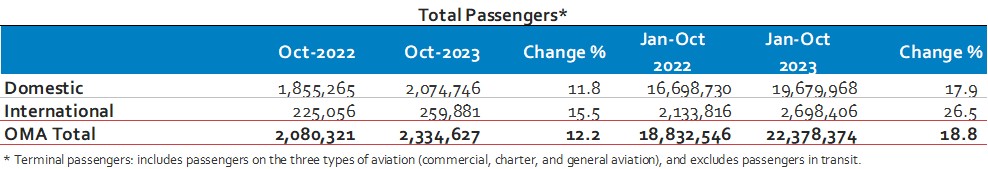OMA reports a 12.2% increase in October 2023 passenger traffic |
