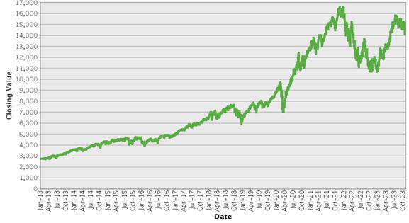 | Nasdaq-100 Index® – Historical Closing Values January 2, 2013 to November 6, 2023 |