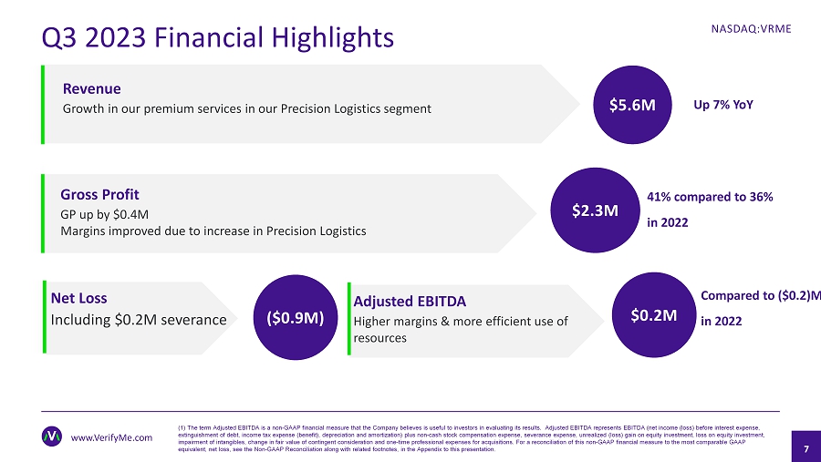 Financials www.VerifyMe.com NASDAQ:VRME – Q3 2023 Financial Highlights – Balance Sheet 6