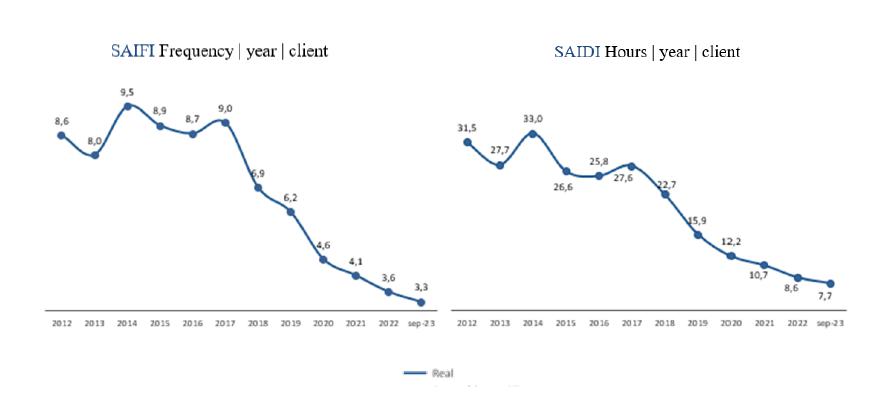 The Company maintains the quality levels of the electricity service, having recorded the best technical service quality global indicators (SAIDI and SAIFI) in its history. Furthermore, its customers’ satisfactory perception of the service received has achieved a record-breaking level.