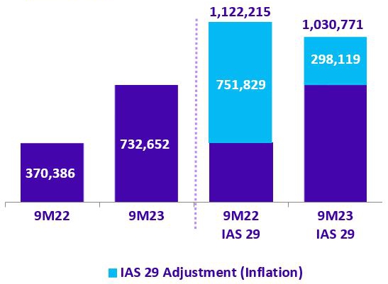 | · | The decrease is mainly because in 9M22, the Company recognized an impairment of goodwill assigned to the Argentine cash-generating unit (CGU), amounting to $495,484 million in the currency of 9M23. |