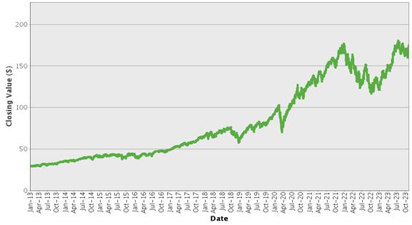 | Technology Select Sector SPDR® Fund – Historical Closing Values January 2, 2013 to November 7, 2023 |