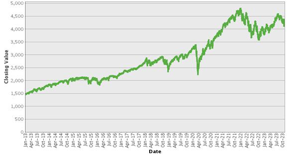 | S&P 500® Index – Historical Closing Values January 2, 2013 to November 7, 2023 |