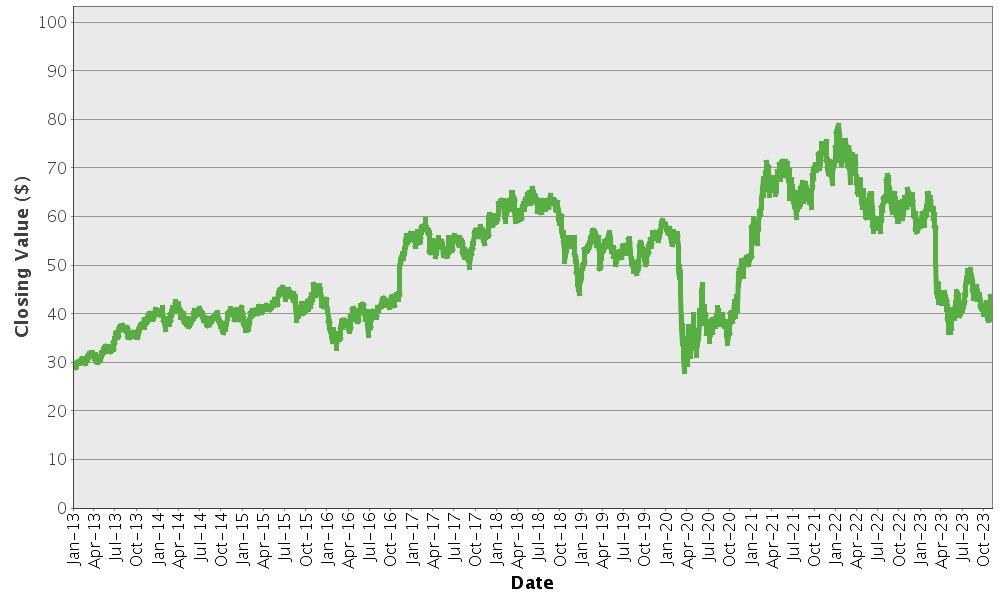 SPDR® S&P® Regional Banking ETF – Historical Closing Values