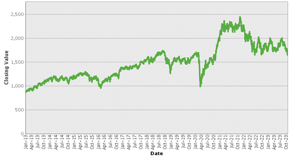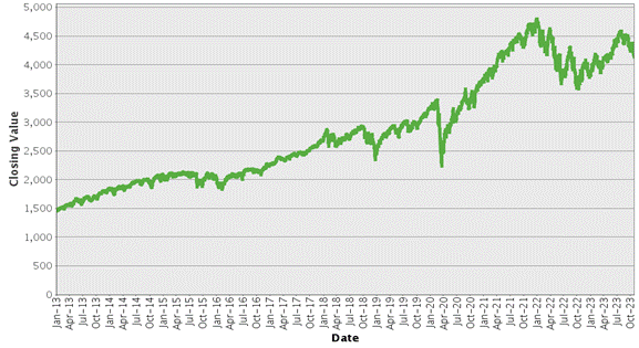 | S&P 500® Index – Historical Closing Values January 2, 2013 to October 26, 2023 |
