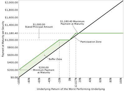 In this scenario, the worst performing underlying has depreciated from its initial underlying value to its final underlying value, but not by more than the buffer percentage. As a result, you would be repaid the stated principal amount of your securities at maturity but would not receive any positive return on your investment.