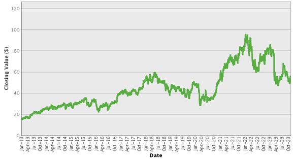| The Charles Schwab Corporation – Historical Closing Values January 2, 2013 to November 7, 2023 |