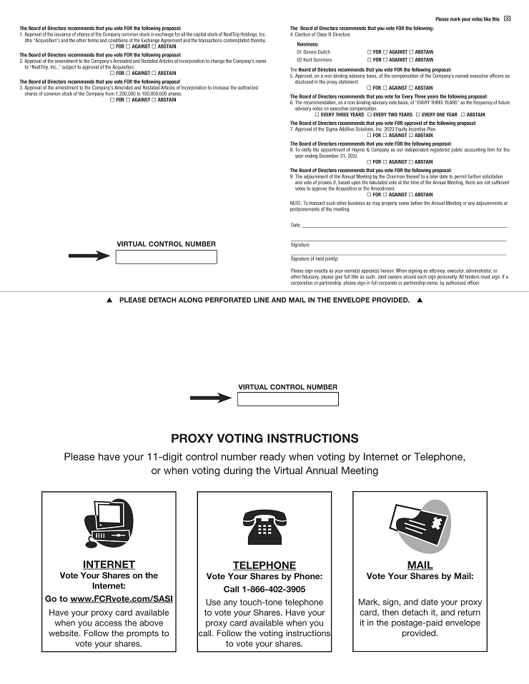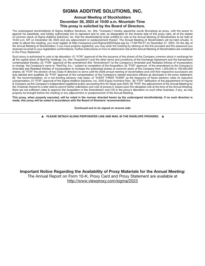 of Sigma Additive Solutions, Inc., to be held virtually, via live webcast on December 28, 2023, at 10:00 a.m. Mountain Time. In order to attend the meeting, you must register at http://viewproxy.com/Sigma/2023/htype.asp