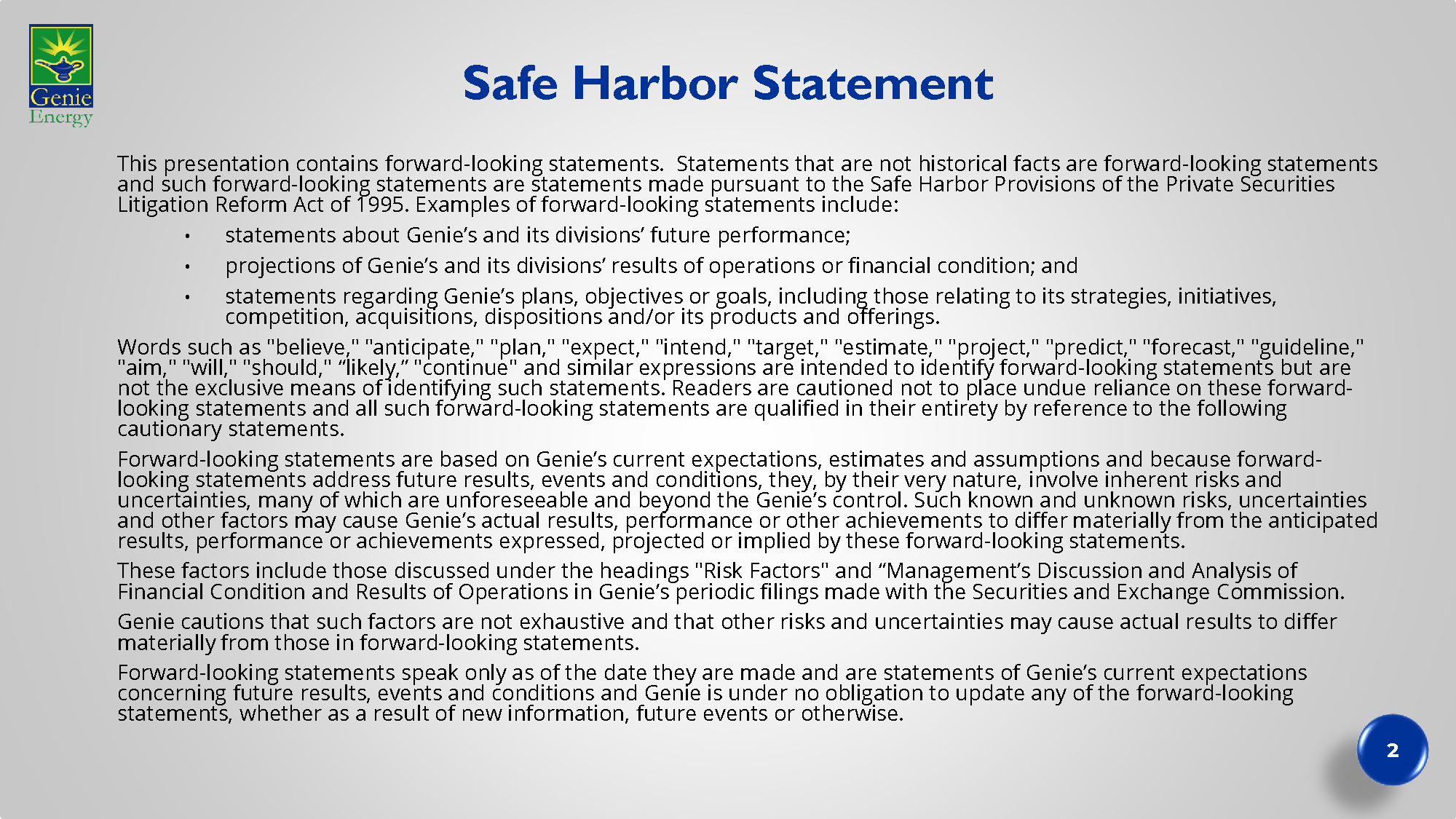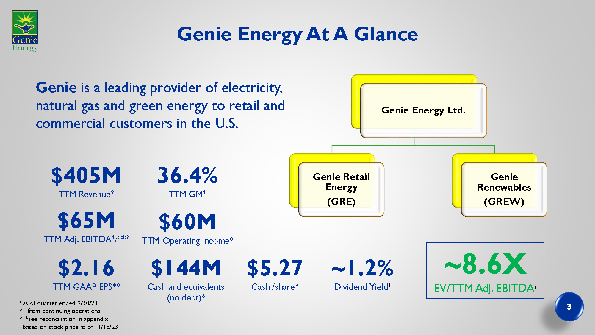 Investor Presentation November 2023 Genie Energy Ltd (NYSE: GNE)