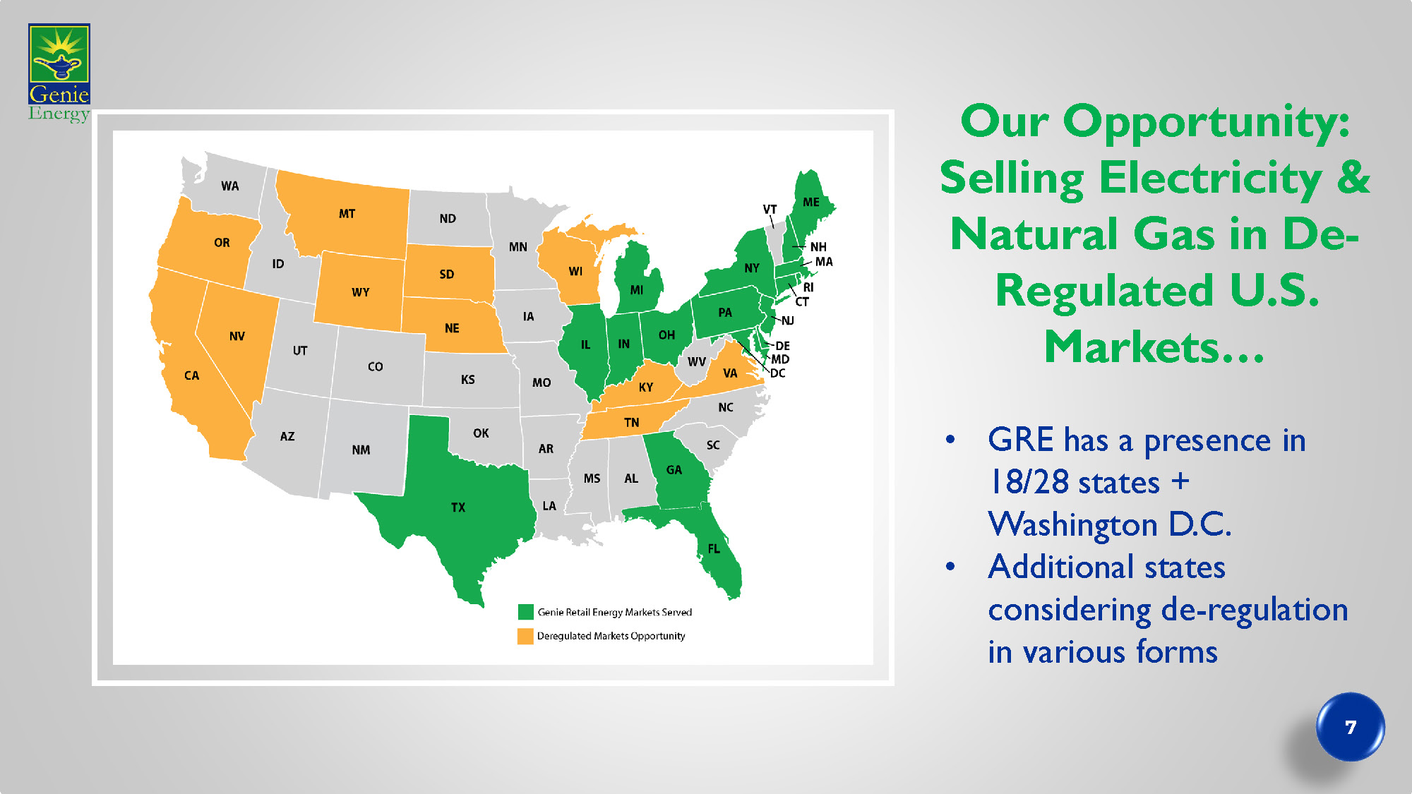 Our Opportunity: Selling Electricity & Natural Gas in De - Regulated U.S. Markets… • GRE has a presence in 18/28 states + Washington D.C. • Additional states considering de - regulation in various forms 7