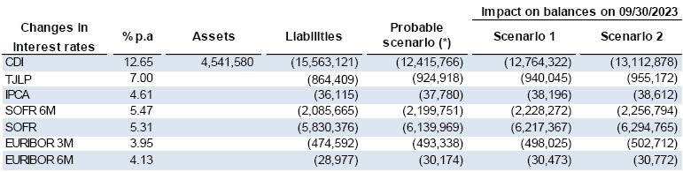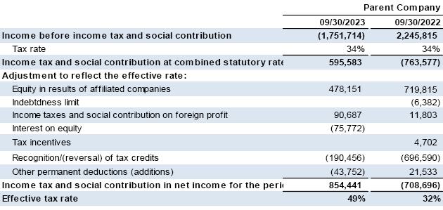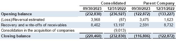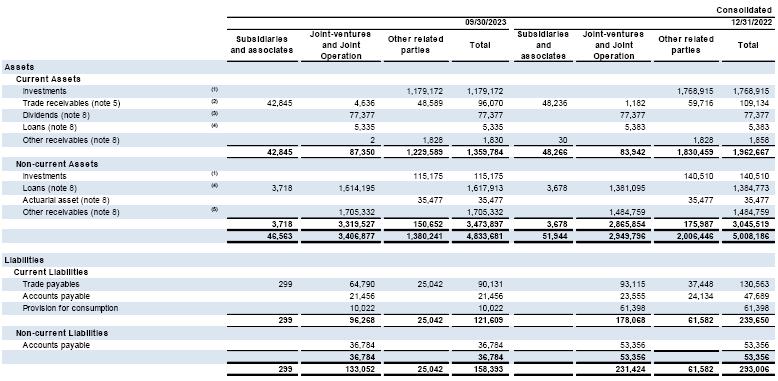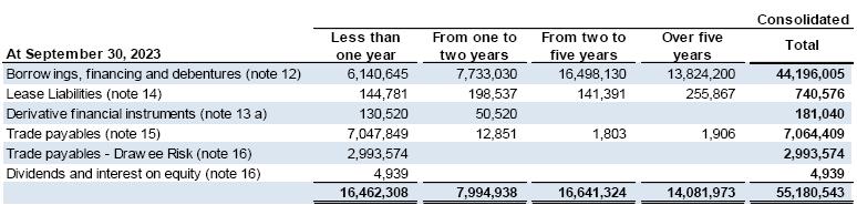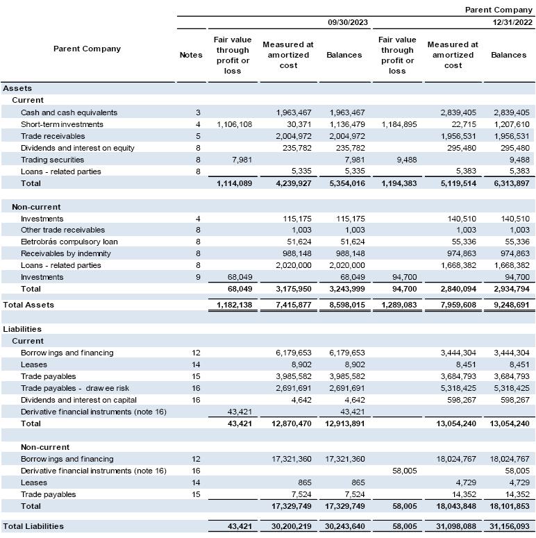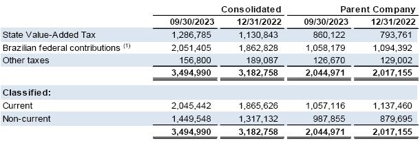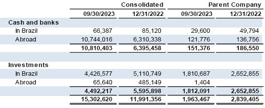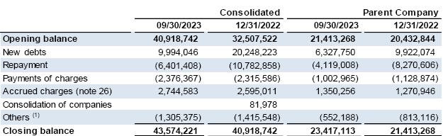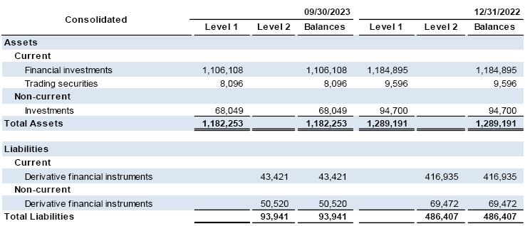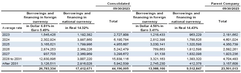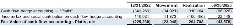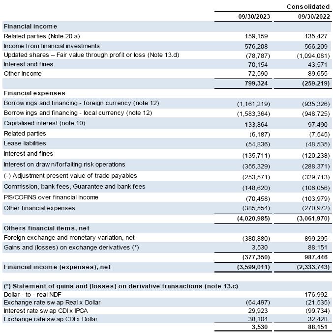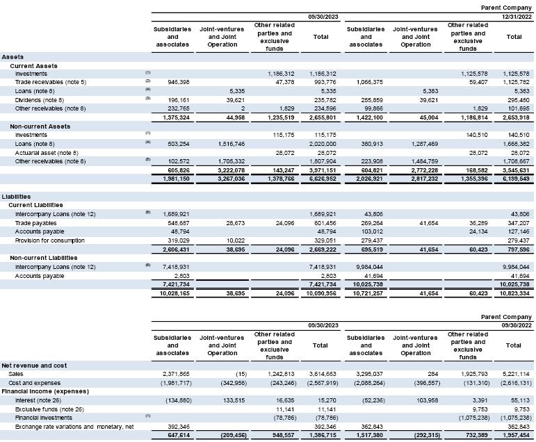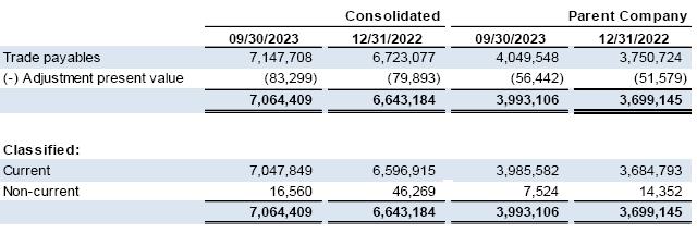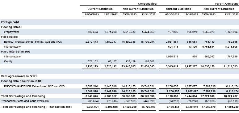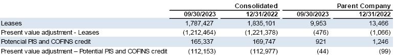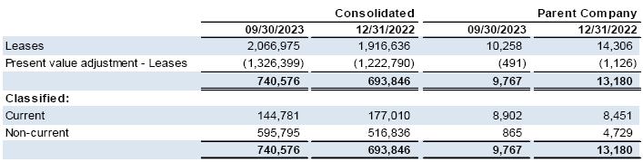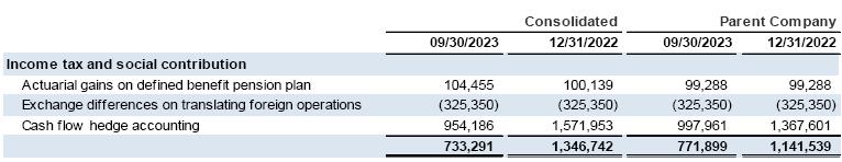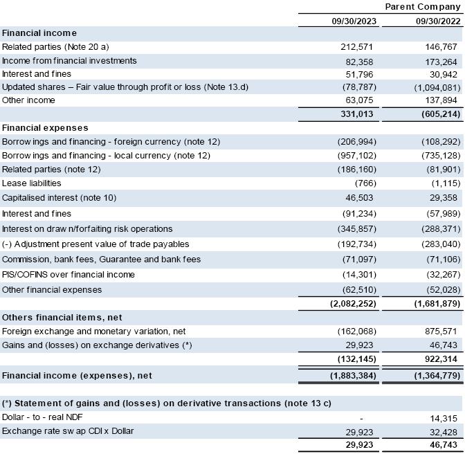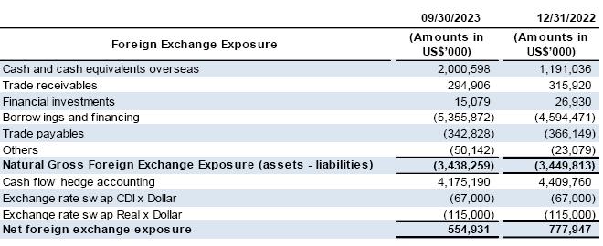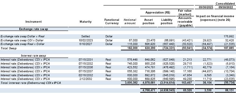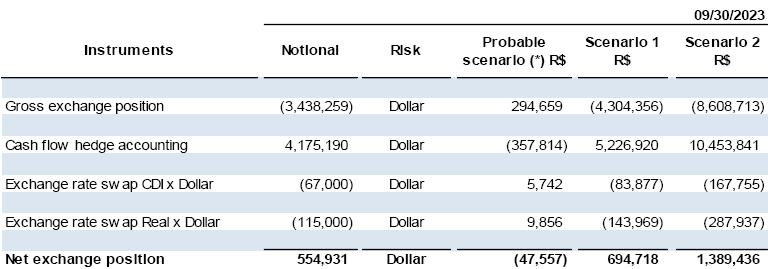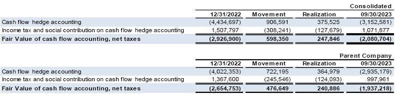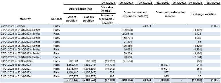 Foreign currency: In the Parent Company these are intercompany contracts amounting to R$7,342,254 as of September 30, 2023 (R$10,027,850 as of December 31, 2022).