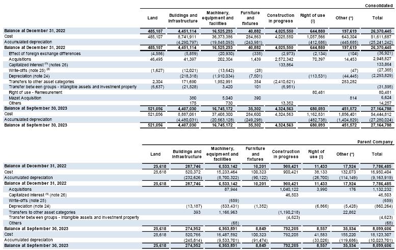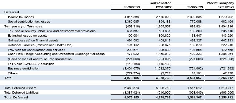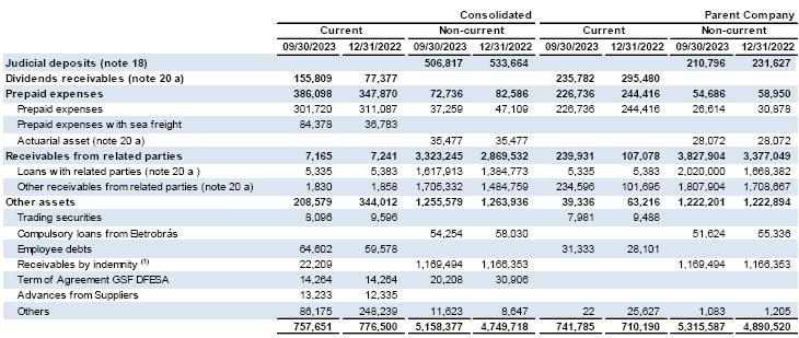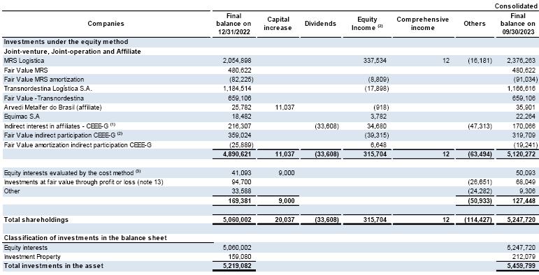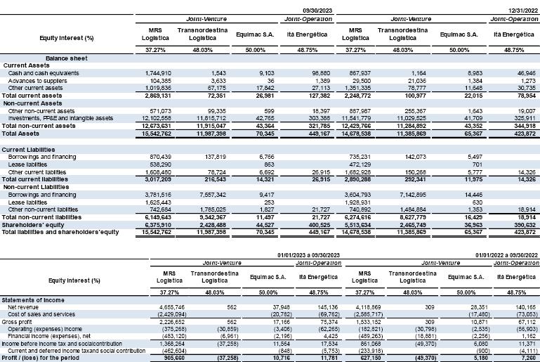 | (5) | Others (Assets): In Consolidated as of September 30, 2023, refers advance for future capital increase with Transnordestina Logística S.A. in the amount of R$1,705,332 (R$1,484,759 as of December 31, 2022); |