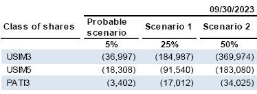 The Company does not make provisions for lawsuits, which Management’s expectations, based on the opinion of legal counsel, is a possible loss. The following table shows a summary of the balance of the main matters classified as possible risk compared to the balance as of September 30, 2023 and December 31, 2022.