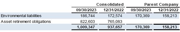 The balance of provisions for environmental liabilities and asset retirement obligation is as follows: