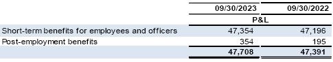 The key management personnel with authority and responsibility for planning, directing, and controlling the Company’s activities include members of the Board of Directors and statutory officers. The following is information on the compensation of such personnel and the related balances as of September 30, 2023, and 2022.