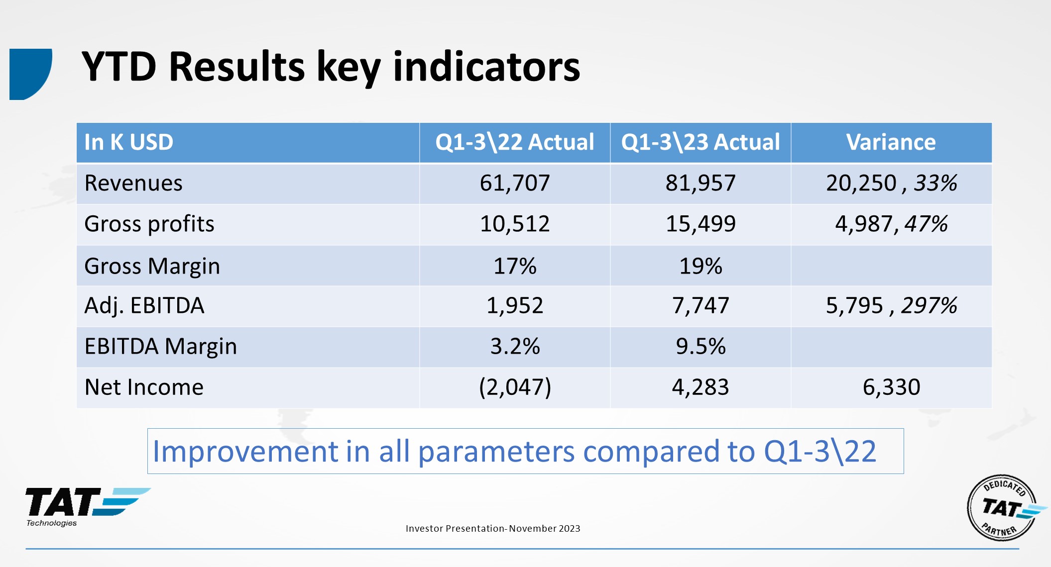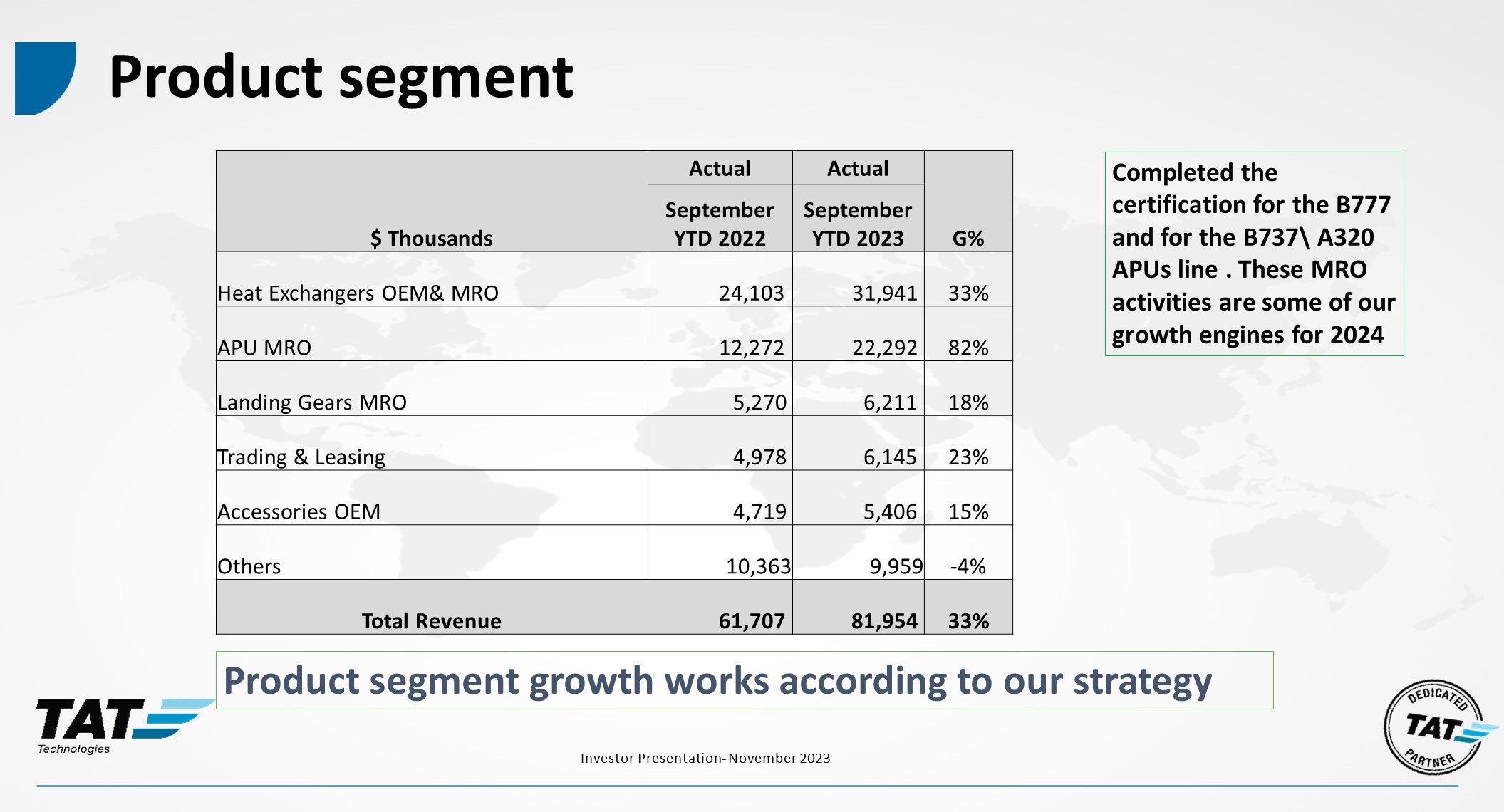TAT Technologies Ltd. (the "Company") hereby furnishes its investors presentation, which is attached to this Form 6-K as Exhibit 99.1