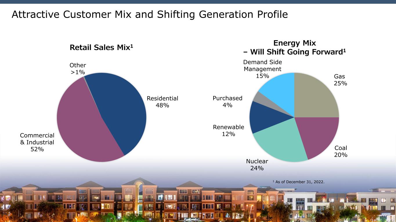 A T A G L A N C E Arizona’s Largest Electric Company 4 $22.7BConsolidated assets $4.3BRevenues ~$8.6B Market cap ~6.3 GW Generating capacity owned or leased – year end 1.3MCustomers ~51%Current % from clean energy LargestNuclear plant in U.S. Service Territory1 Key Facts as of Dec. 31, 2022 1 As of December 31, 2022. Arizona