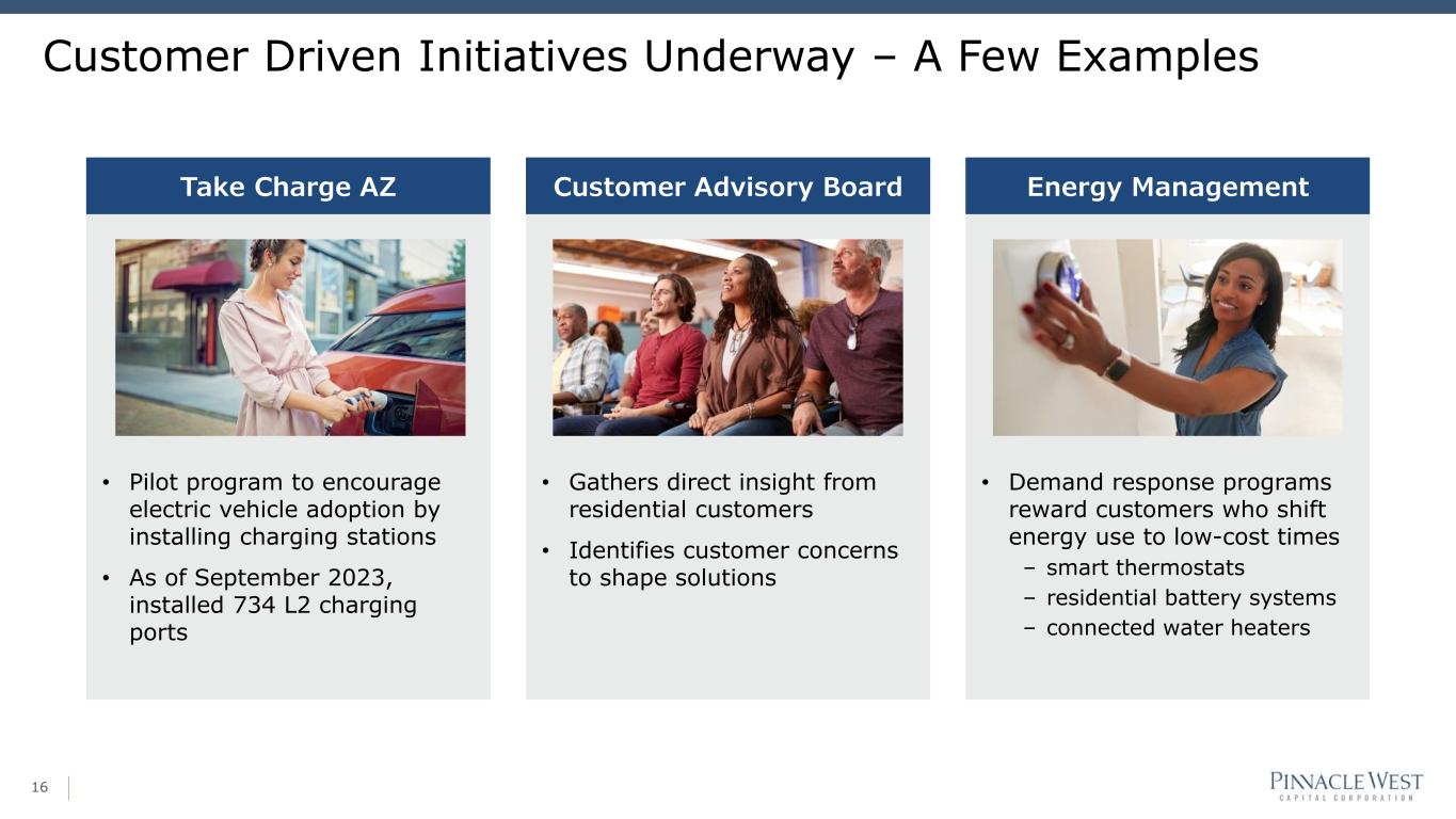 Customer Driven Initiatives Underway – A Few Examples 16 Take Charge AZ Customer Advisory Board • Pilot program to encourage electric vehicle adoption by installing charging stations • As of September 2023, installed 734 L2 charging ports Energy Management • Gathers direct insight from residential customers • Identifies customer concerns to shape solutions • Demand response programs reward customers who shift energy use to low-cost times – smart thermostats – residential battery systems – connected water heaters