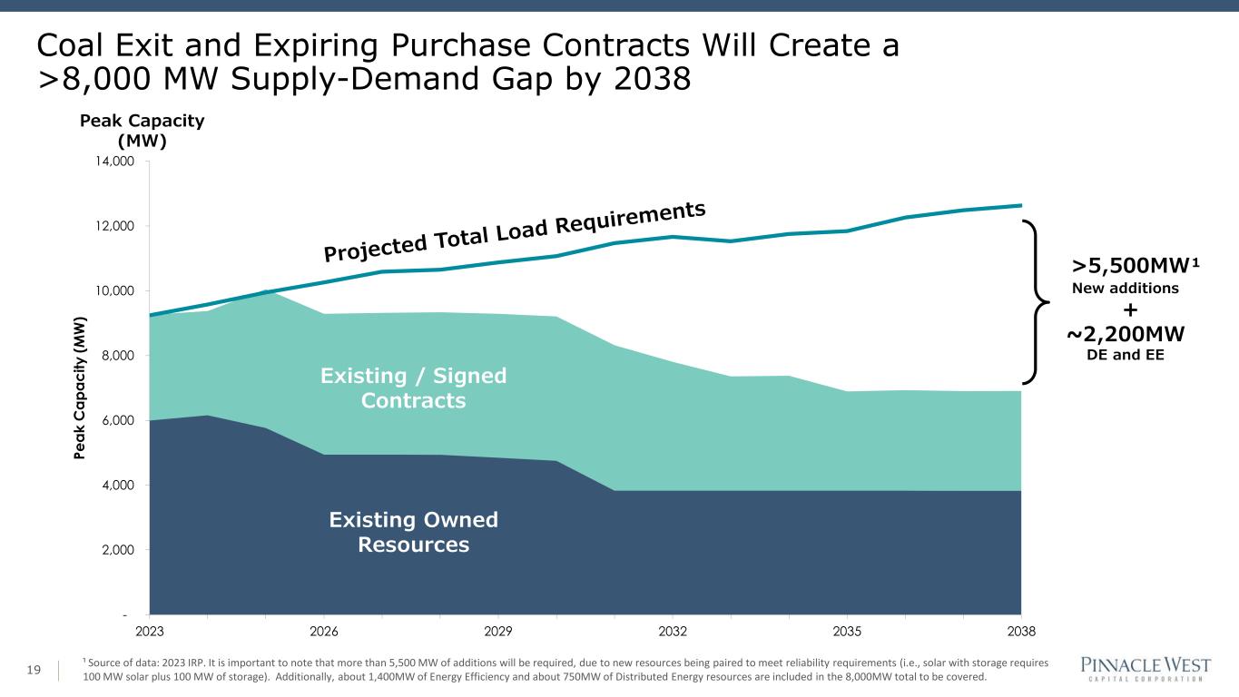 - 2,000 4,000 6,000 8,000 10,000 12,000 14,000 2023 2026 2029 2032 2035 2038 P e a k C a p a c it y ( M W ) Coal Exit and Expiring Purchase Contracts Will Create a >8,000 MW Supply-Demand Gap by 2038 ¹ Source of data: 2023 IRP. It is important to note that more than 5,500 MW of additions will be required, due to new resources being paired to meet reliability requirements (i.e., solar with storage requires 100 MW solar plus 100 MW of storage). Additionally, about 1,400MW of Energy Efficiency and about 750MW of Distributed Energy resources are included in the 8,000MW total to be covered. 19 Peak Capacity (MW) >5,500MW¹ New additions + ~2,200MW DE and EE Existing Owned Resources Existing / Signed Contracts