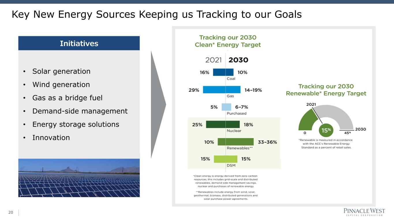 Key New Energy Sources Keeping us Tracking to our Goals 20 Initiatives • Solar generation • Wind generation • Gas as a bridge fuel • Demand-side management • Energy storage solutions • Innovation