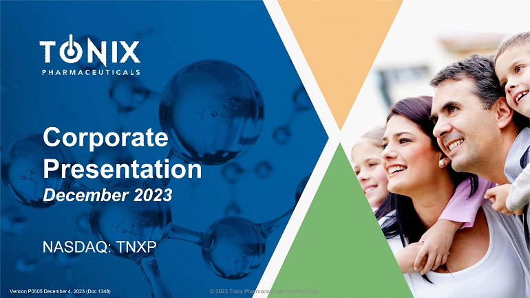 © 2023 Tonix Pharmaceuticals Holding Corp. Corporate Presentation December 2023 NASDAQ: TNXP Version P05 05 December 4, 2023 (Doc 1348 )