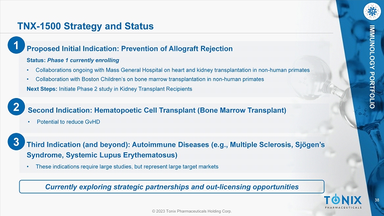 © 2023 Tonix Pharmaceuticals Holding Corp. IMMUNOLOGY: KEY CANDIDATES