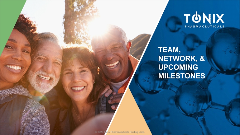 © 2023 Tonix Pharmaceuticals Holding Corp. TEAM, NETWORK, & UPCOMING MILESTONES