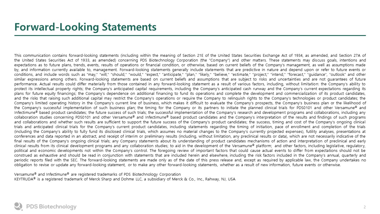 trademarks of PDS Biotechnology Corporation KEYTRUDA® is a registered trademark of Merck Sharp and Dohme LLC, a subsidiary of Merck & Co., Inc., Rahway, NJ, USA