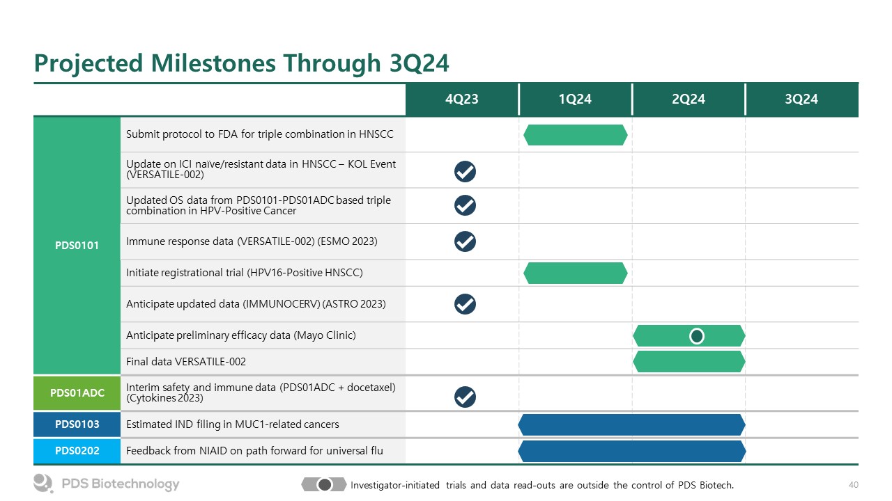 planned clinical trials for PDS0101 and other Versamune® and Infectimune® based product candidates; the future success of such trials; the successful implementation of the Company’s research and development programs and collaborations,
