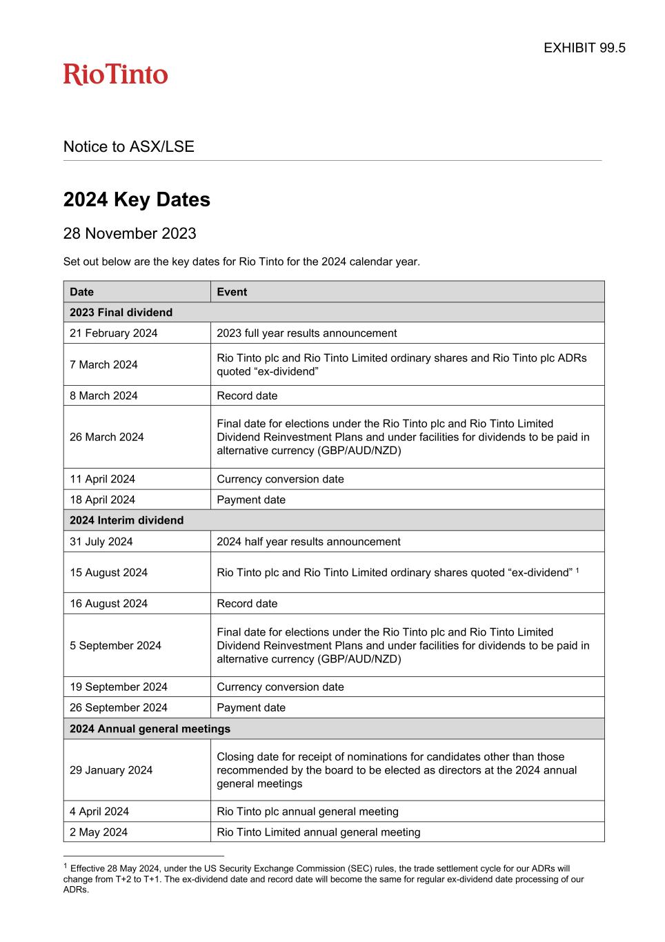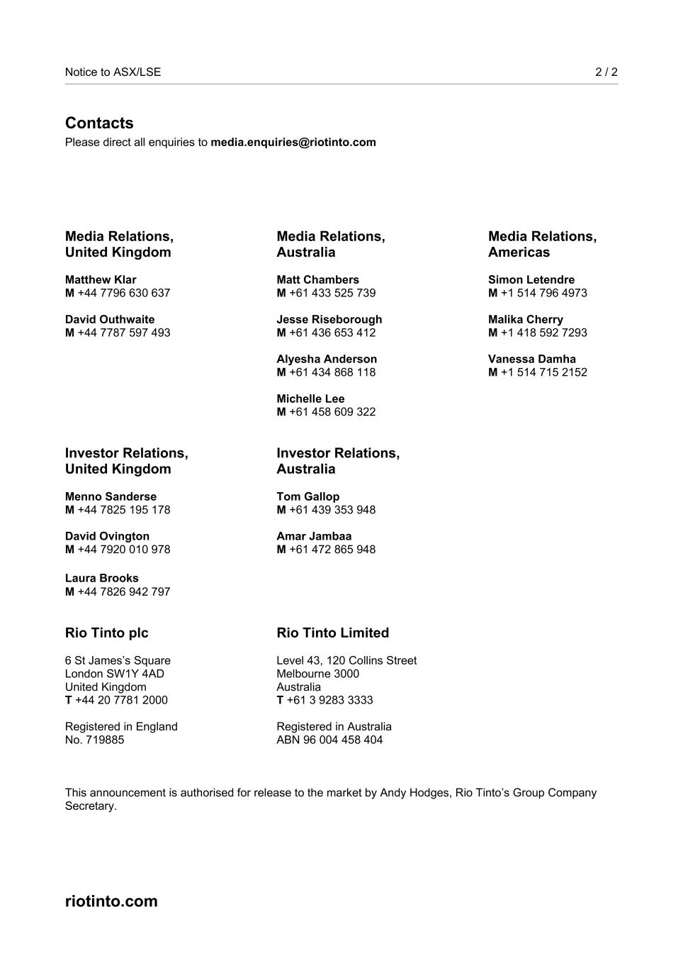 | Rio Tinto plc | Rio Tinto Limited |