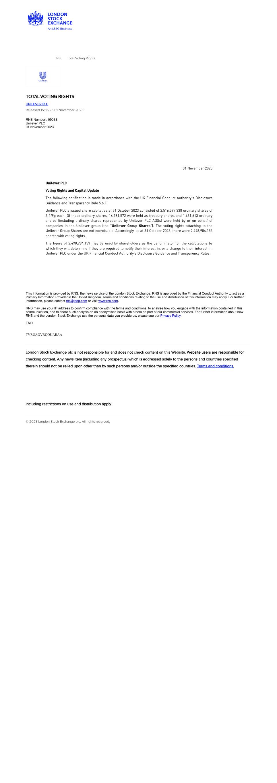 | Exhibit | 99.3 | Stock exchange announcement dated | November 10, 2023 | Entitled | |