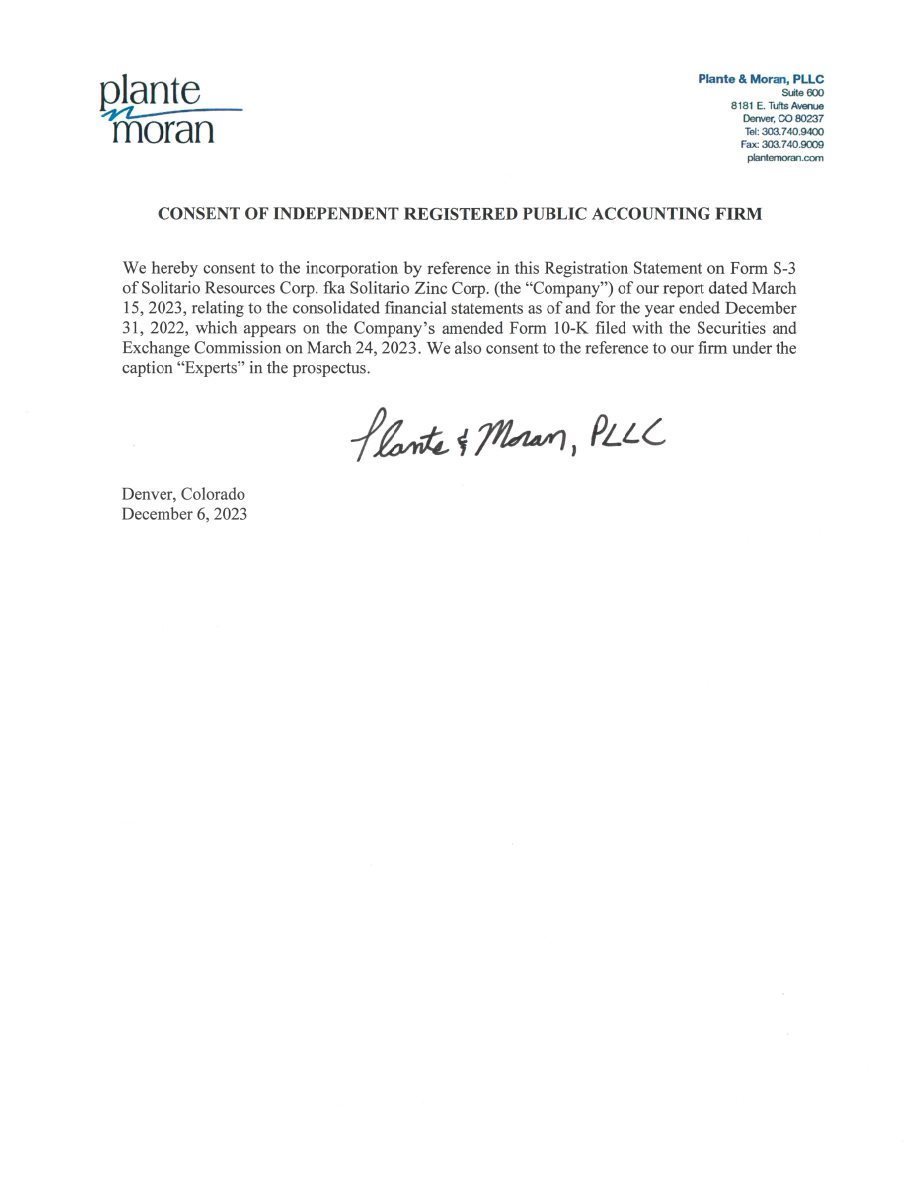 | RE: | Form S-3 Registration Statement and Form S-8 Registration Statement (333-274525) (together, the “Registration Statements”) of Solitario Resources Corp. (the “Company”) |