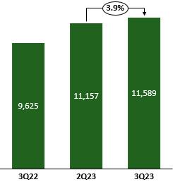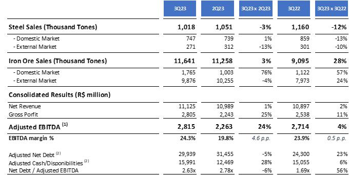 | · | Cost of Goods Sold (COGS) totaled R$ 8,320 million in 3Q23, down 4.9% from the previous quarter, reflecting the normalization of production in the steel industry. |