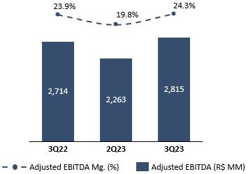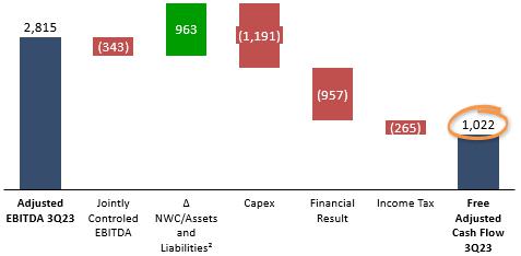 ³ Adjusted Net Debt and Adjusted Cash/Availability consider 37.27% of MRS, in addition to not considering Forfaiting and Drawn Risk operations.