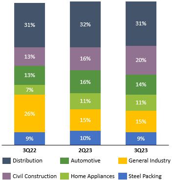 The steel Sales Volume was impacted by the lower sales volume during the third quarter, which was marked by the commercial strategy of prioritizing price, without the application of discounts, to the detriment of the sold volume. This strategy proved to be assertive for the Company's financial results.
