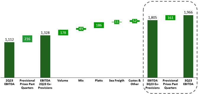 | · | The group of Other Revenues and Operating Expenses was negative by R$ 113 million in 3Q23, which represents a reduction of 11.5% compared to 2Q23, explained by the positive effect of iron ore hedging operations, which generated a gain of R$ 31 million in the period. |