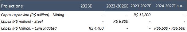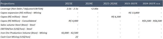 In November/23, the Company removed its projection of achieving an EBITDA per ton in the steel industry of US$165/ton in 2023.