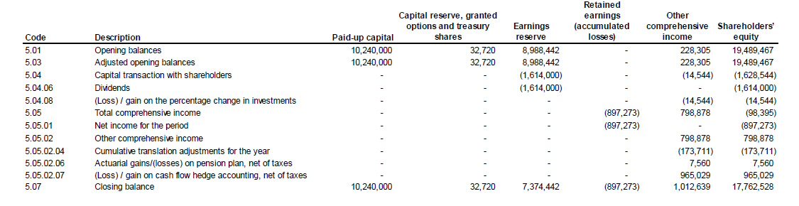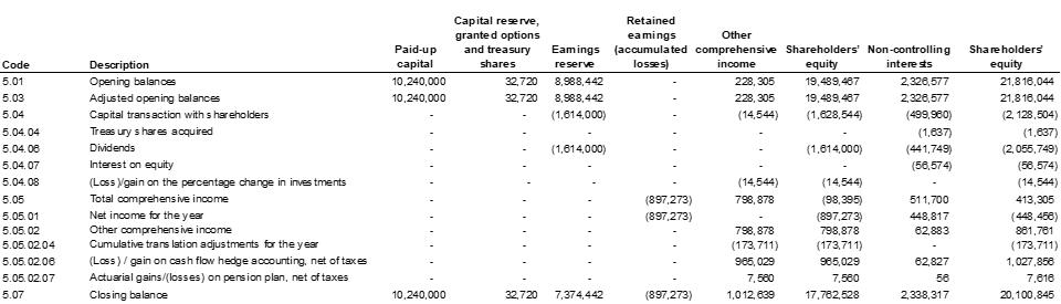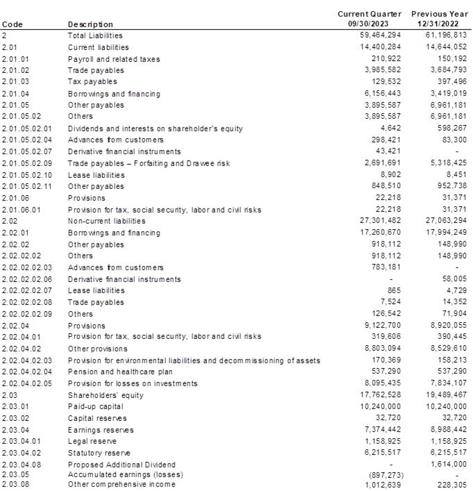 The aforementioned quarterly information includes the individual and consolidated Statements of Value Added (DVA), referring to the nine-month period ended September 30, 2023, prepared under the responsibility of the Company's management and presented as supplementary information for IAS purposes 34. These statements were submitted to review procedures performed in conjunction with the review of the Company's quarterly information - ITR -, in order to conclude whether they are reconciled with the interim financial information and accounting records, as applicable, and if their form and content are in accordance with the criteria defined in NBC TG 09 - "Demonstration of Added Value". Based on our review, we are not aware of any facts that lead us to believe that these statements of value added were not prepared, in all material respects, in accordance with the criteria defined in this standard and in a manner consistent with the interim financial information, individual and consolidated, taken together.