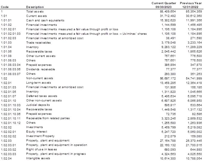We have reviewed the parent company and consolidated interim financial information of Companhia Siderúrgica Nacional ("Company"), contained in the Quarterly Information Form - ITR for the quarter ended September 30, 2023, which comprise the balance sheet as of September 30, 2023 and the related statements of income, comprehensive income, for three and nine-month period then ended and changes in shareholder’s equity and cash flows for the nine-month period then ended, including a summary of significant accounting policies and notes.
