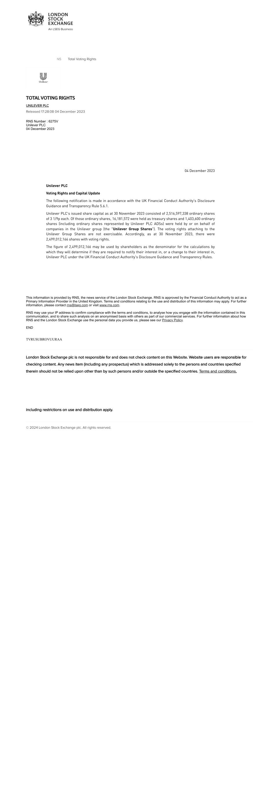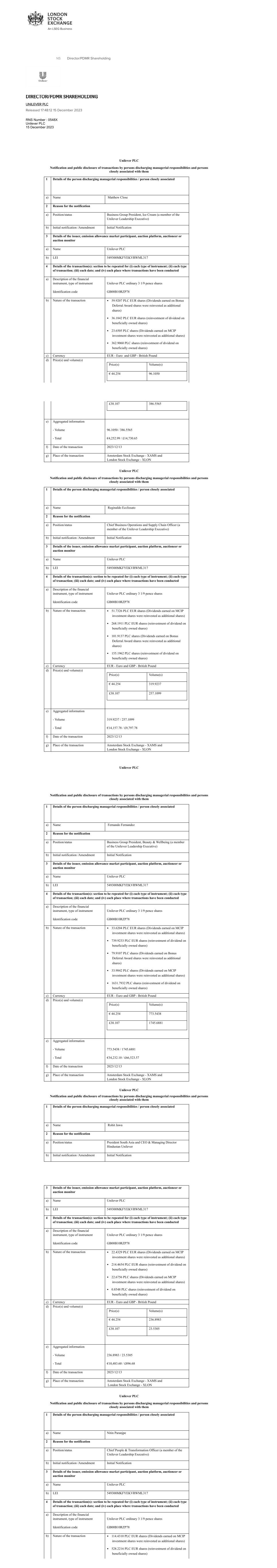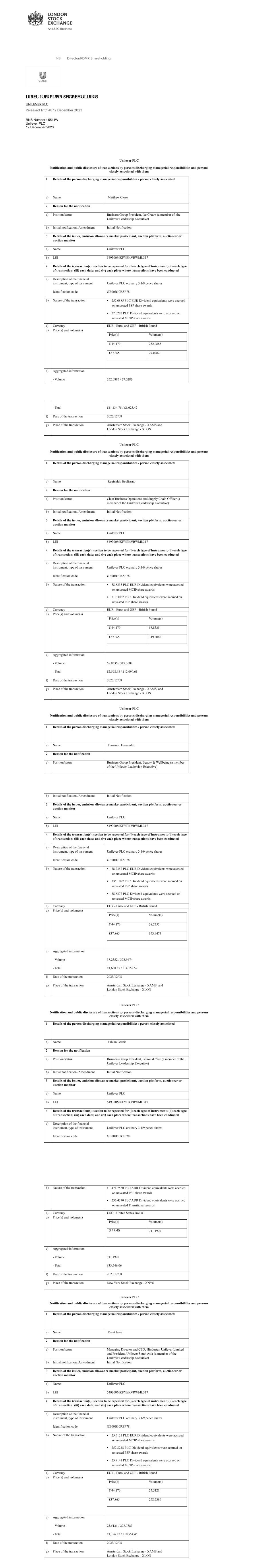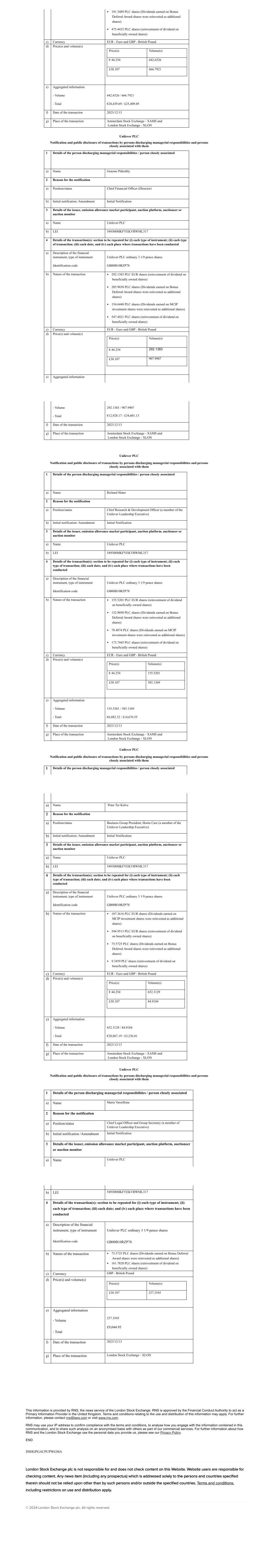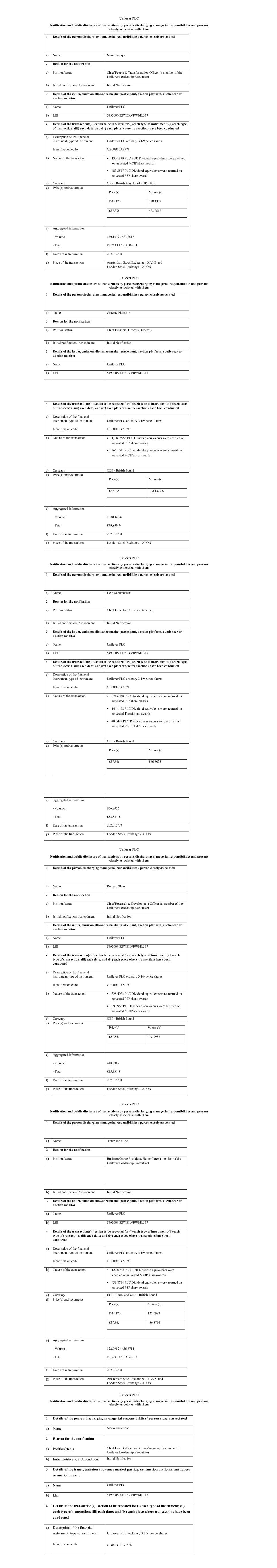 | UNILEVER PLC |