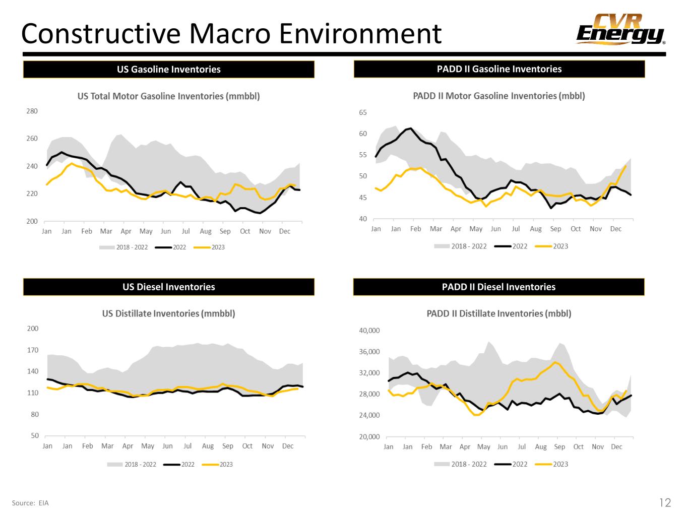 Constructive Macro Environment 11Source: EIA US Gasoline Demand PADD II Gasoline Demand US Diesel Demand PADD II Diesel Demand