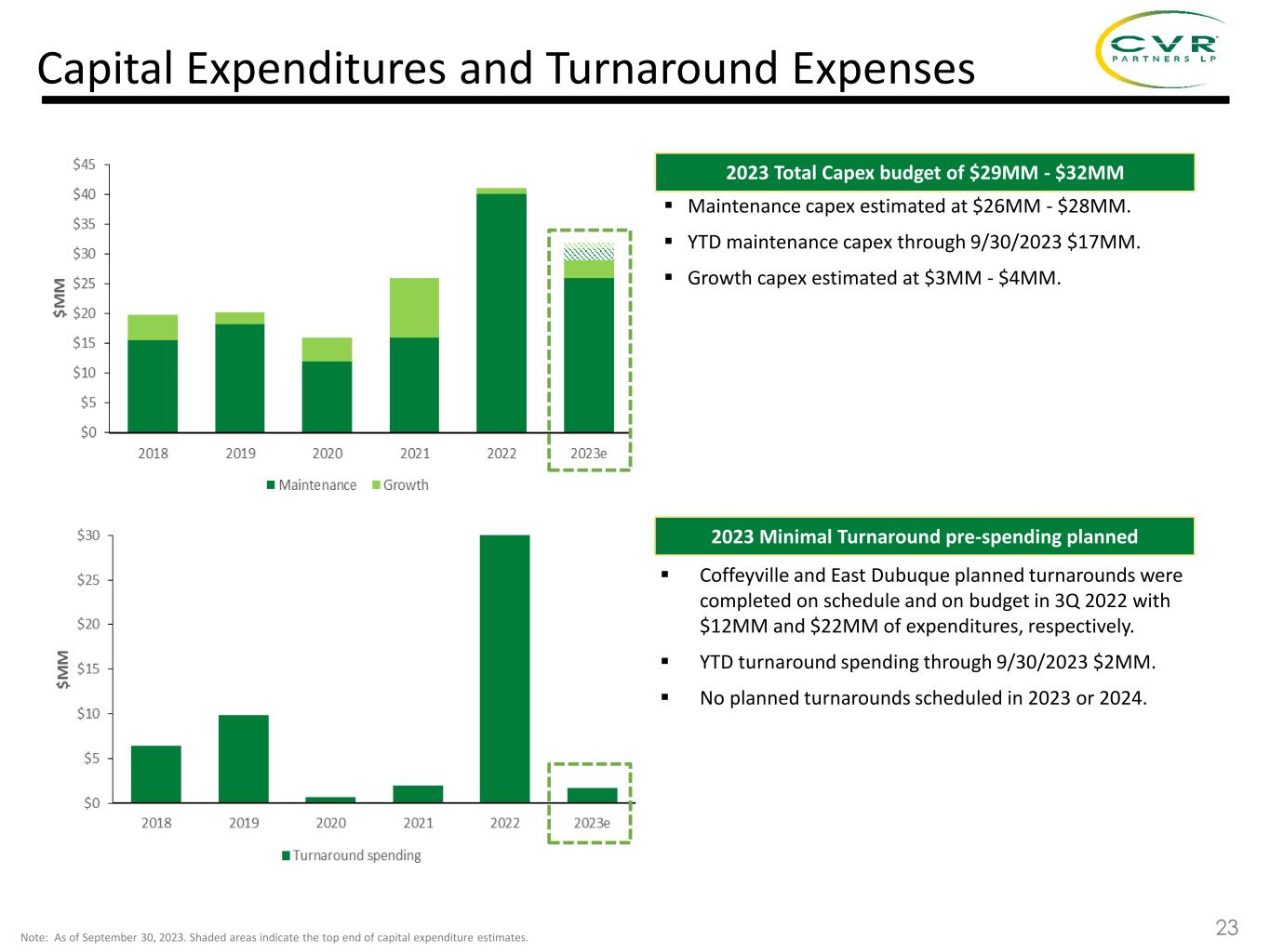 Key Operating Statistics Consolidated Production Volumes(1) Consolidated Ammonia Utilization Consolidated Feedstock Costs(1) Consolidated Sales Revenue(1)(2) (1) For the twelve months ended September 30, 2023. (2) Excludes freight and other. 22