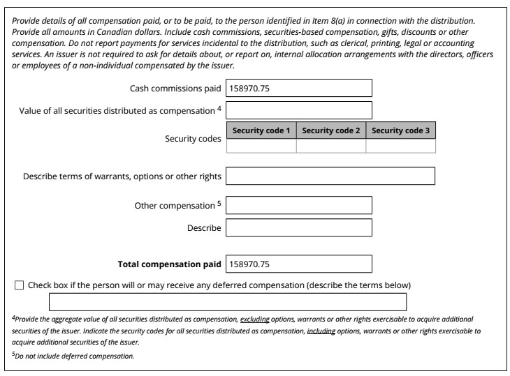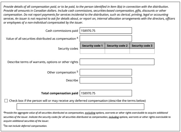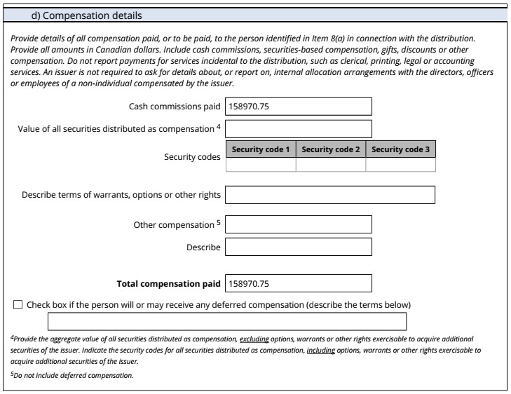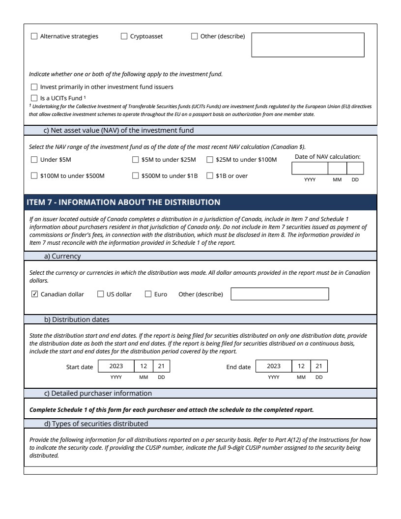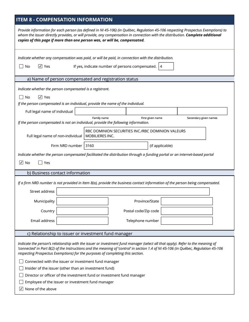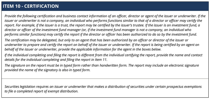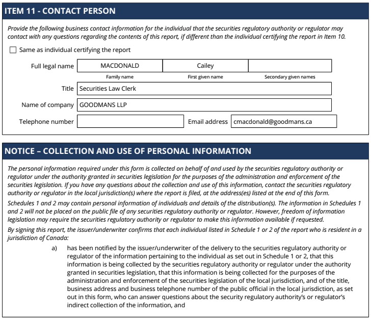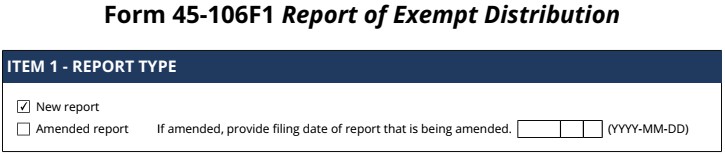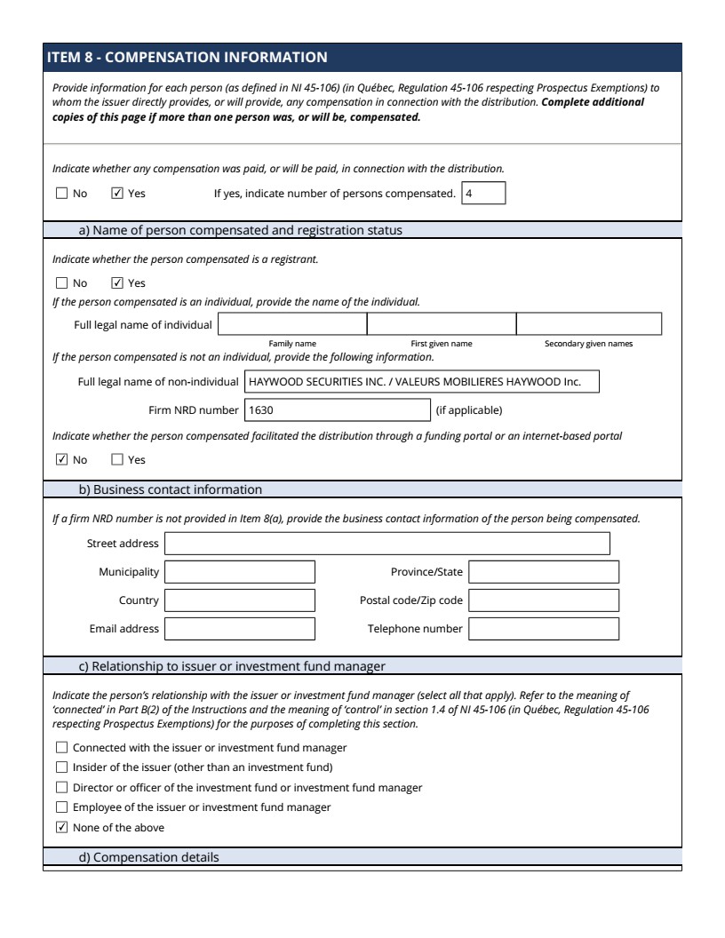| 99.1 | Form 45-106F1 Report of Exempt Distribution |