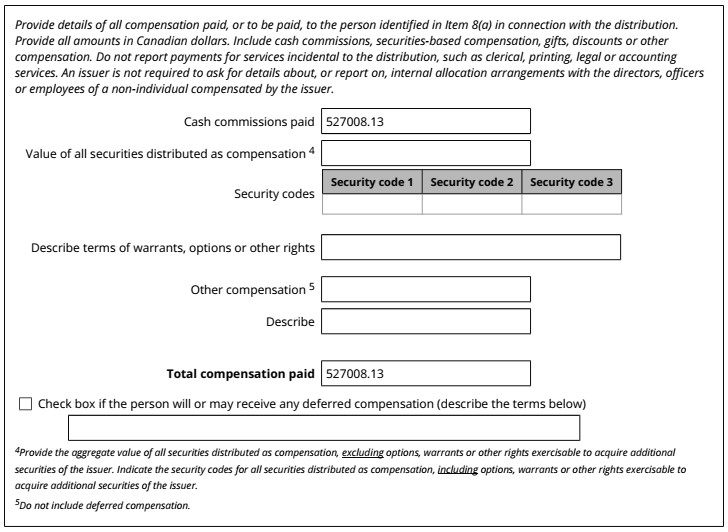 Exhibit 99.1 — Form 45-106F1 Report of Exempt Distribution