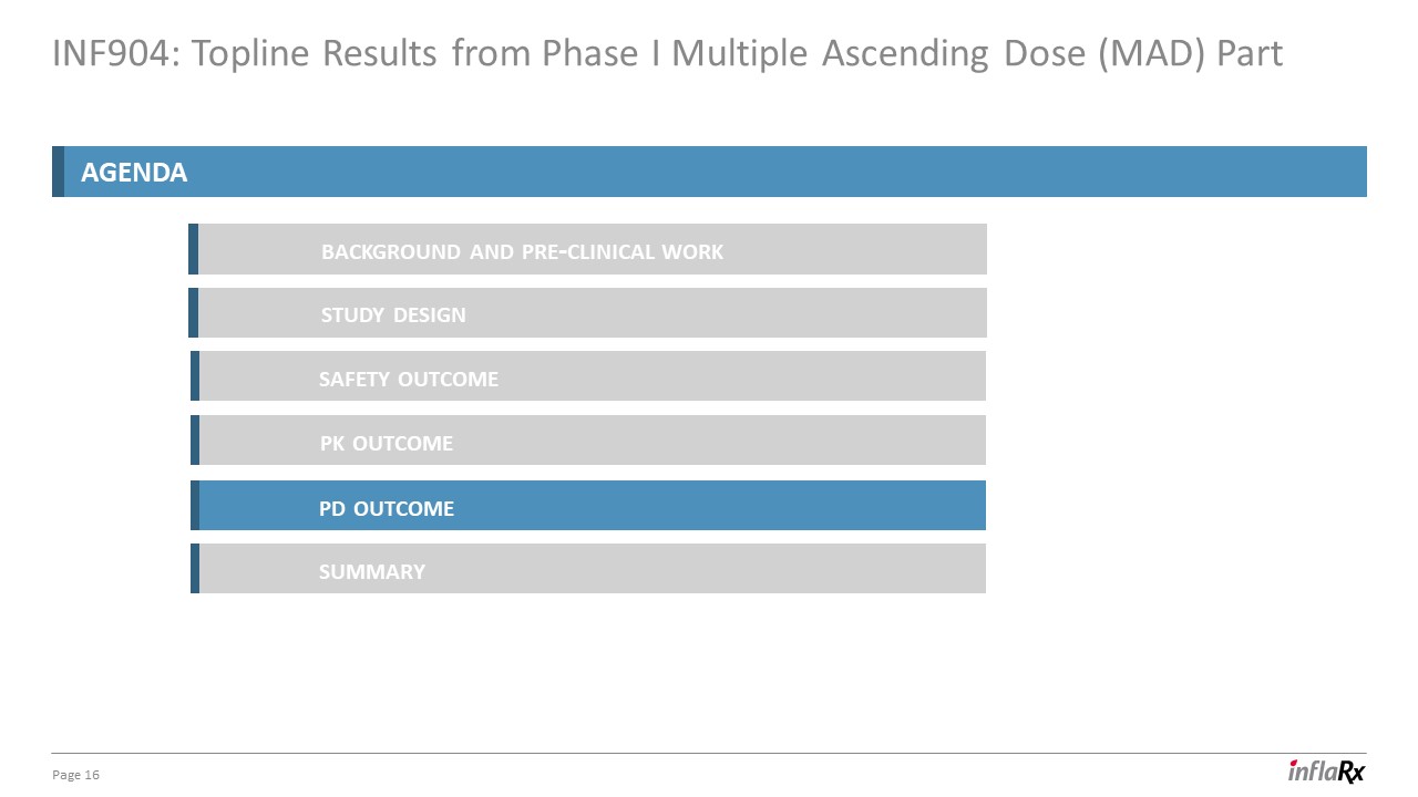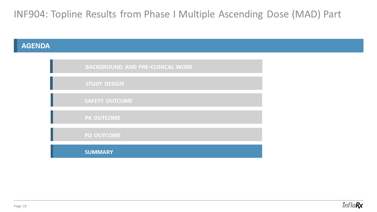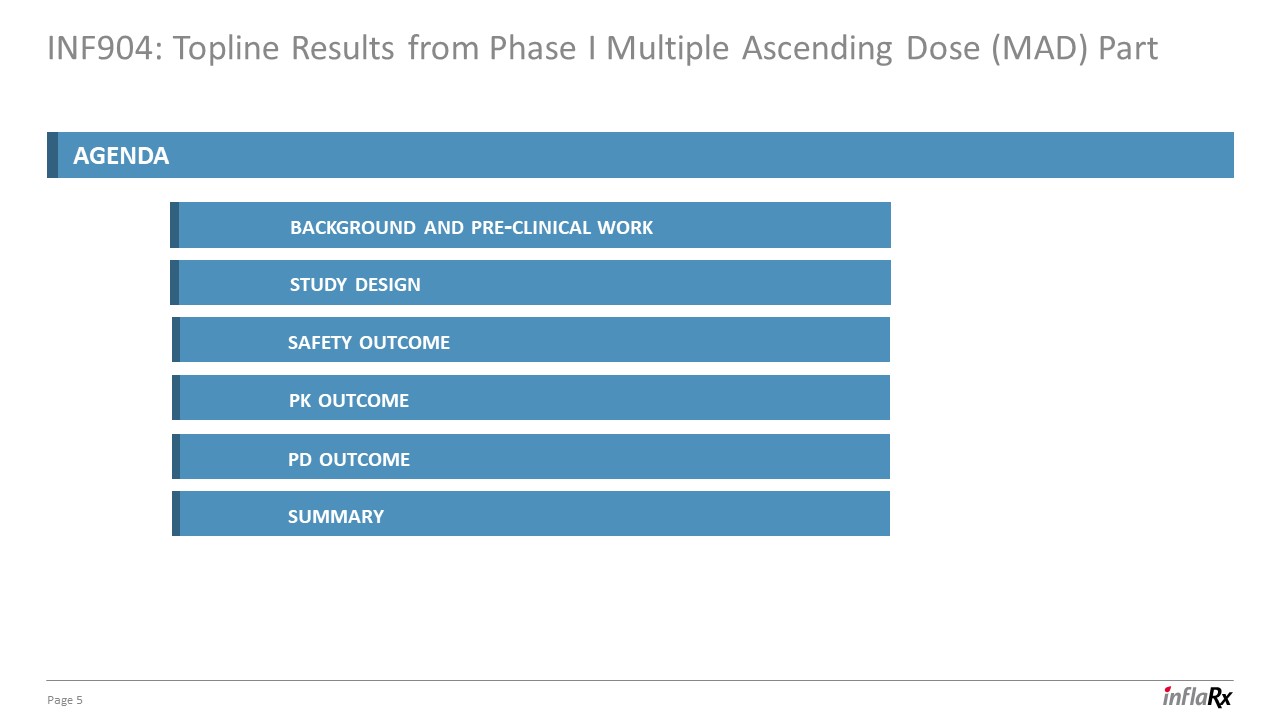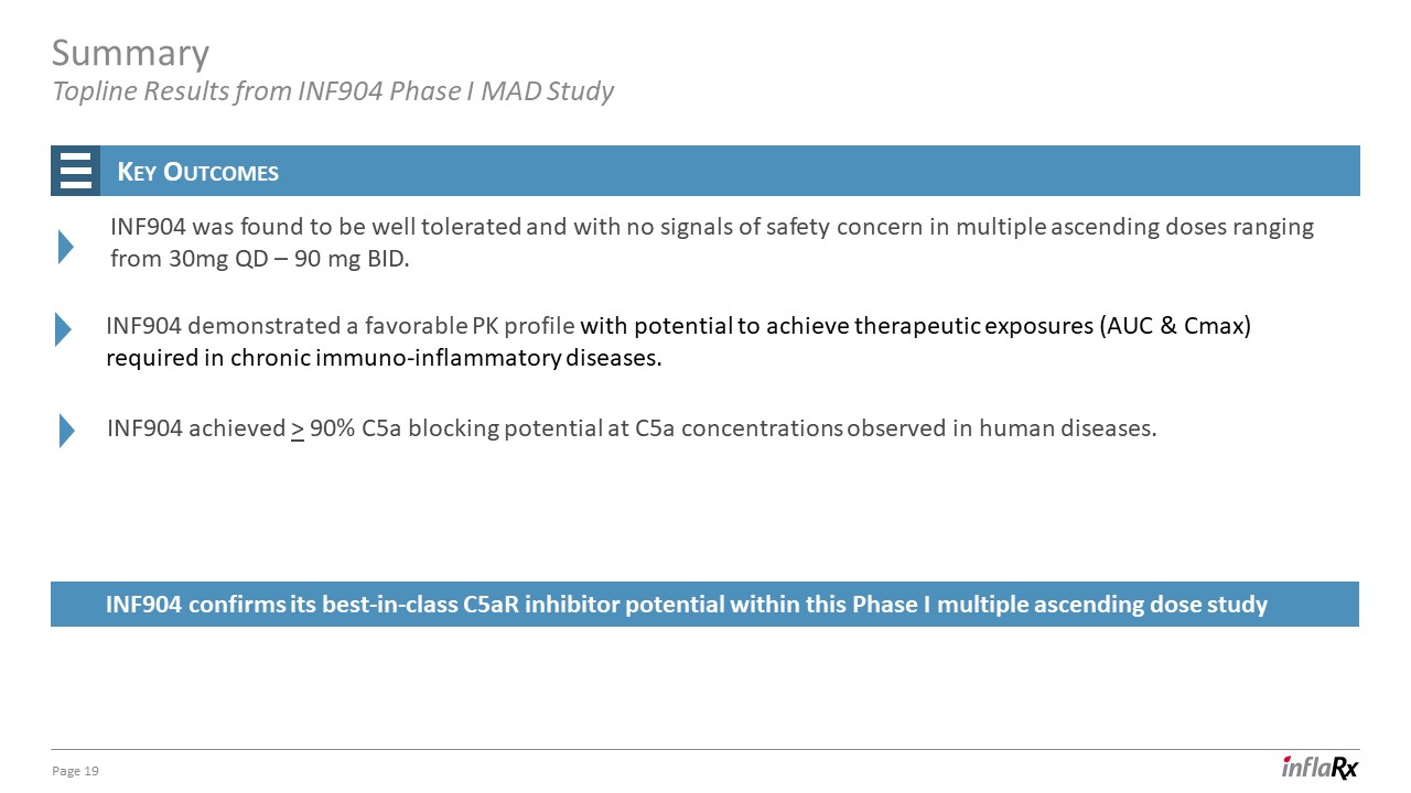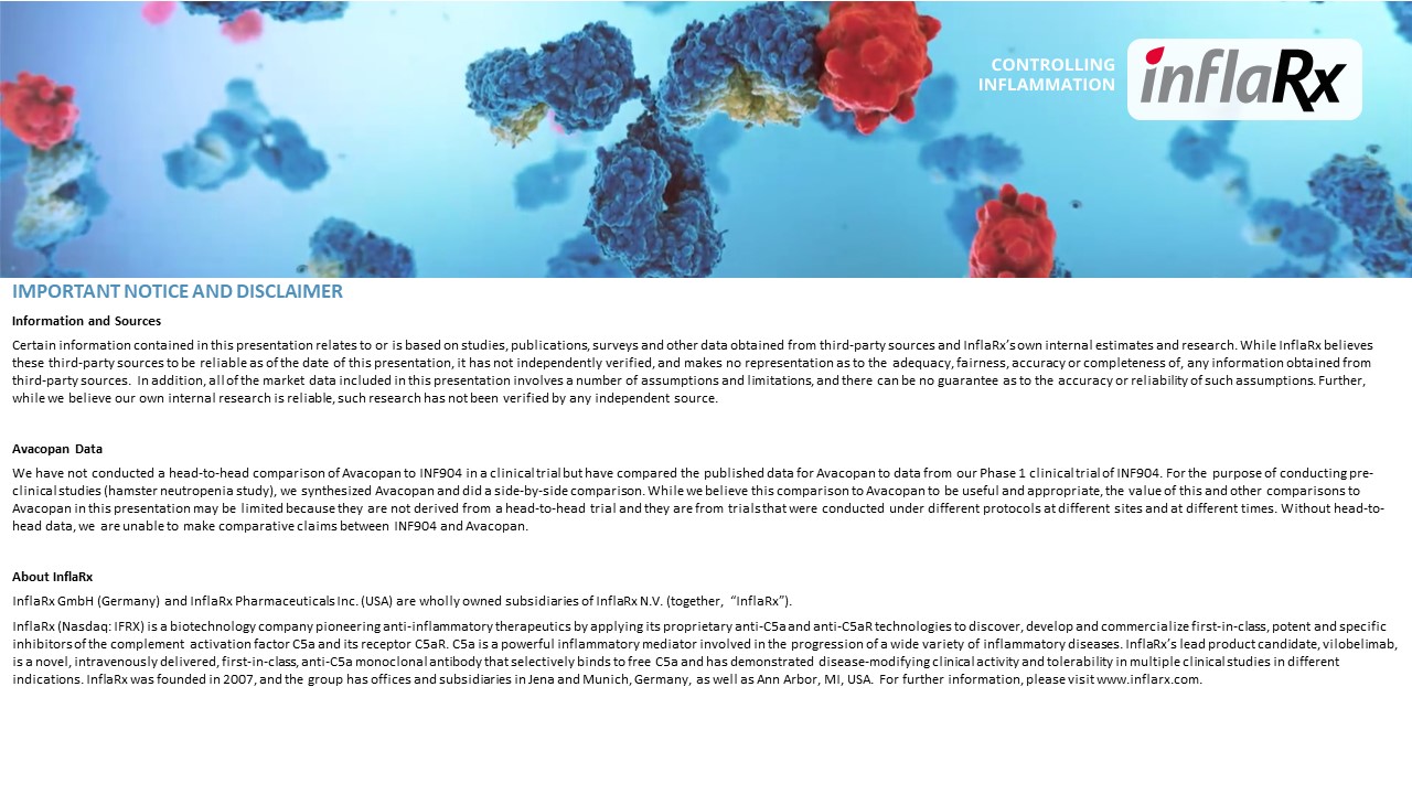 Dose (MAD) Phase I Study with C5aR Inhibitor INF904.” A copy of the press release is attached hereto as Exhibit 99.1 and is incorporated by reference herein.